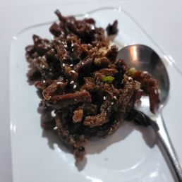 (Overall: A) - Overall, I think Hwa Yuan is an authentic Chinese restaurant with tasty food and a good location to host large events as the venue is quite spacious and can support a crowd. The ambience was quite comfy as well and besides the bathroom being a bit slippery, it is otherwise nice. The service was likewise good for the most part with the staff being considerate to ask if anyone want to take pictures while some of the larger items like the fish and duck are still intact, although they did make some mistakes like mixing bottles of wine in a wine glass. (Sesame Noodles: B) - A cold appetizer that is well flavored to kick off the night. It is a bit modest and stripped down with room to captivate, but nevertheless a reasomable dish. (Sliced Pork Belly: C) - The pork belly is well flavored and tender and the chili oil gives a pleasant kick without being overly spicy. I did find the dish sloppy and difficult to eat though. (Pickled Wood Ear: B) - I found these wood ear to be pickled nicely with acidity without being overpowered by spice, although likewise a bit sloppy. (Okra: B) - This okra was pleasantly tender and did a good job infusing some meaty spice into the flavor. The presentation remains on the backburner though. (Peking Duck: B) - The duck meat was moist and tasted relatively fresh, although the skin lost its crispiness. The pairings were also classic and quite nice, and I liked the addition of the pickled radish; however, the pancakes were too thick and dry. Our group ordered three ducks and it was quite interesting to watch all three being cut in parallel, and all differently too. (Spicy Fish Soup: D) - I personally did not like this dish as I felt like there was a variety of a lot of different ingredients without it being clear which ones are intended to be eaten; the only thing that was clear from my bowl was that there was little fish. (Black Truffle Lobster: A+) - I found a 4lb lobster at $98 to be reasonably priced for such prized shellfish, and the presentation is reflected in that. The restaurant also did a fantastic job with by frying the exterior of the lobster to be crispy whilest jeepinh the interior tender. The scallion flavor pairs well, and I love the elevated take with the black truffle flavor which comes through well. (Snow Pea Shoots: C) - The pea shoots are pleasantly tender and sweet. However, it would be nice to see flavor development by bringing that garlic flavor more foreward. (Pork Bao Bun: C) - The pork is roasted nicely with lots of fat to create the tender melt in your mouth lusciousness. However, the presentation is rather sloppy and I'm not sure the intention of the bok choy as it is a bit large to put inside the bun whole. (Sizzling Scallop and Beef: A) - Love the execution of the scallop -- crispy on the outside and tender on the inside; it pairs well with the beef as a chinese take on surf and turf. -- Food: +1 Presentation: E Price: E Atmosphere: +1 Service: +1 Menu: +1 Overall: +4 A Insta/Beli: @amei_eats
